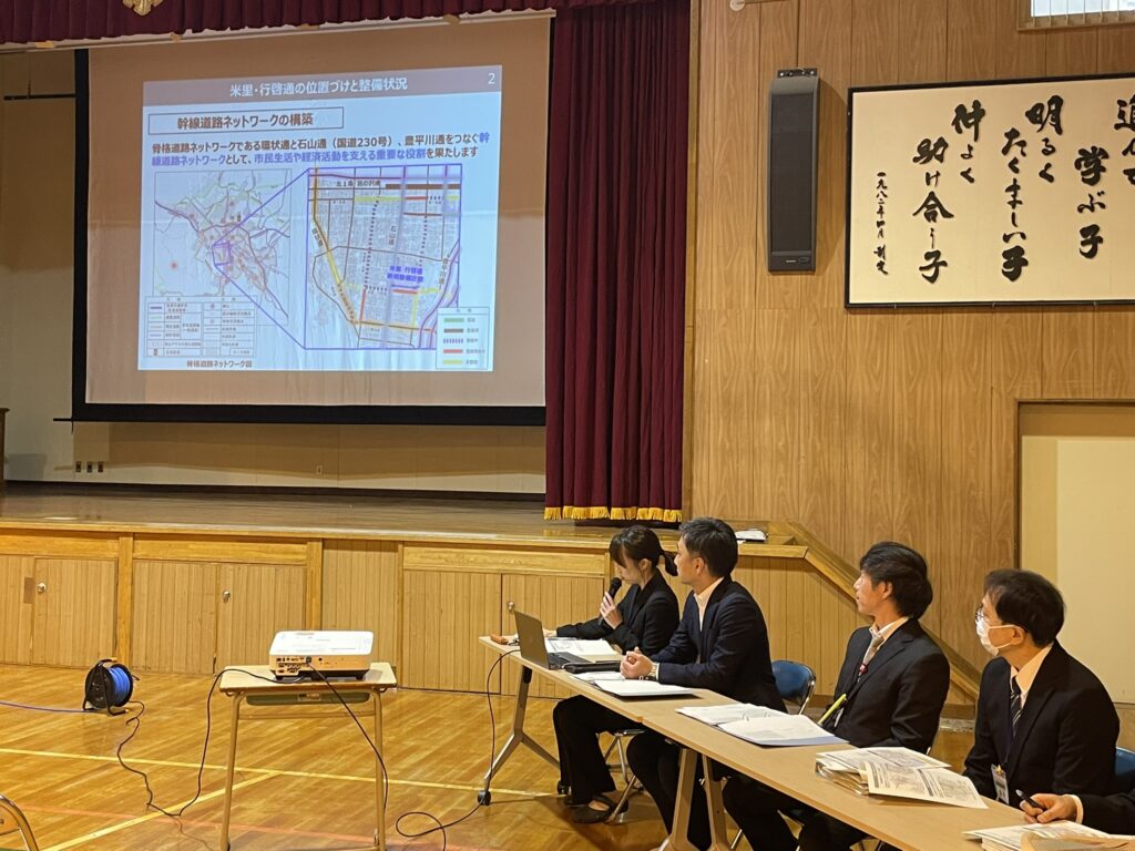 会場には100名近い地域の方が参加され、具体的な土地買収に関する質問に加え、街の再興に関する要望なども出ていました。