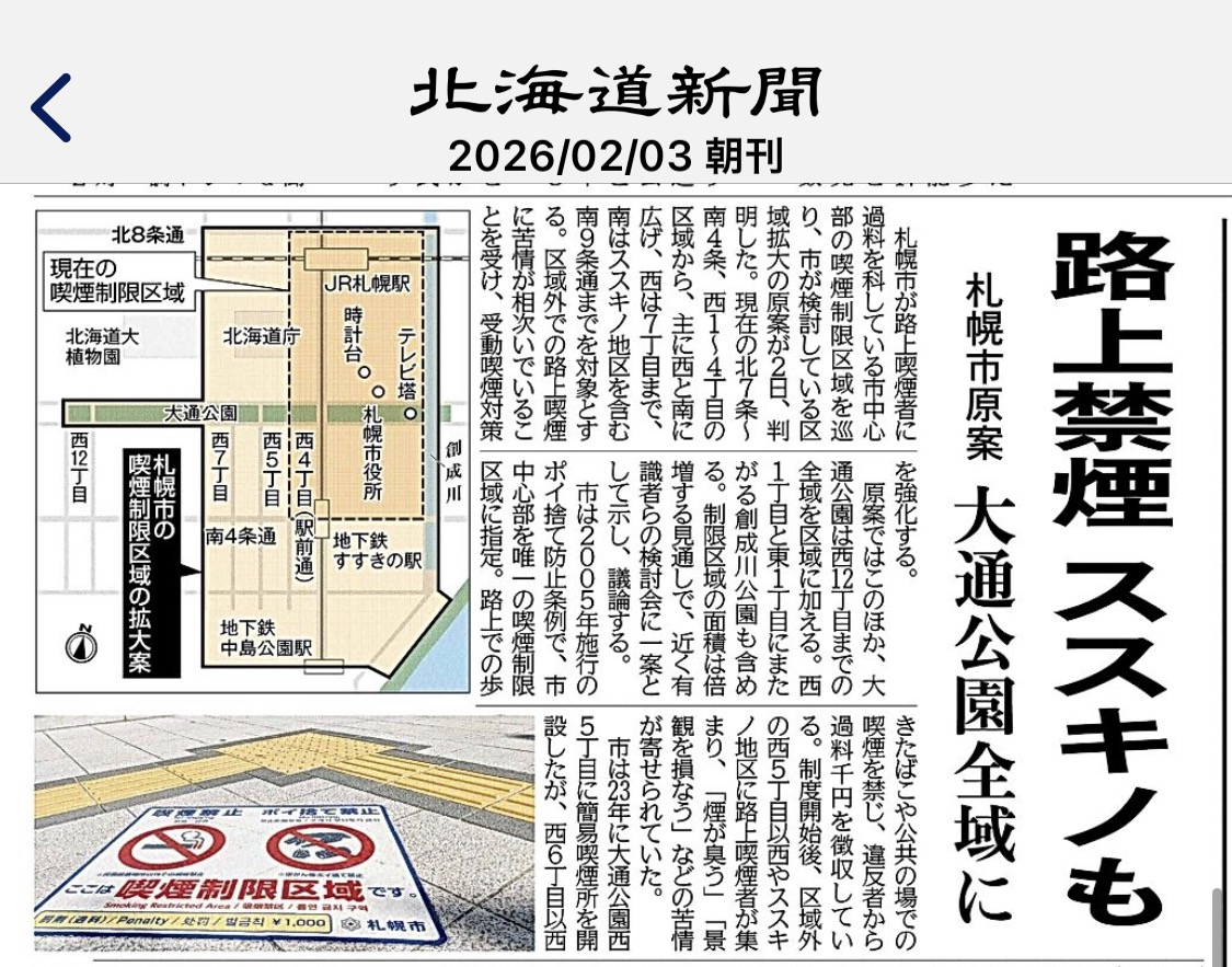 ススキノの路上禁煙化に向けて大きな前進!